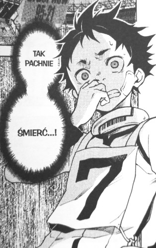 Nie jest to bohater, którego lubię w mangach. Słaby, tchórzliwy i naiwny, zazwyczaj ratowany przez inne osoby. Mam tylko nadzieję, że jego przemiana będzie spektakularna, bo już w pierwszym tomie się mocno zmienia.