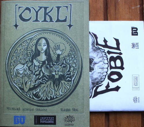 Jestem zafascynowana lekkością rysunku dziewczyn, zwłaszcza, że na tylnej okładce jest miejsce na moją fobię i wrysowały tam mojego demona: skorka, wprawdzie popijającego drinka, ale nadal strrrrasznego. Jednak dopiero po Cyklu widać jak obydwie rysowniczki się rozwinęły. Inna technika, znacznie bardziej wyważona kreska, świetne projekty postaci. Jestem ciekawa co za rok nam zaserwują.