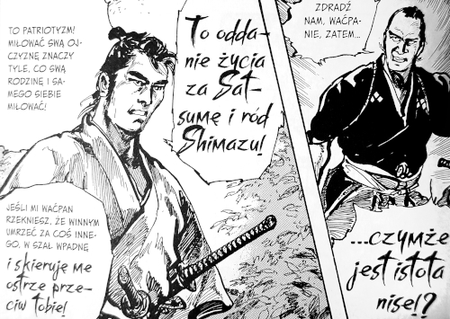 Satsuma Gishiden momentami posługuje się niemal akademickim tonem. Niewątpliwie, wielką zaletą tej powieści graficznej jest demitologia życia samuraja. W całym tomie prezentowany jest nam znacznie mniej romantyczny obraz wojownika o silnym kodeksie postępowania, ale jednocześnie uwięzionego w sztywnej hierarchii, w której ci na dole, mimo że wyżej od przeciętnego obywatela, wciąż byli nieszczęśliwi.