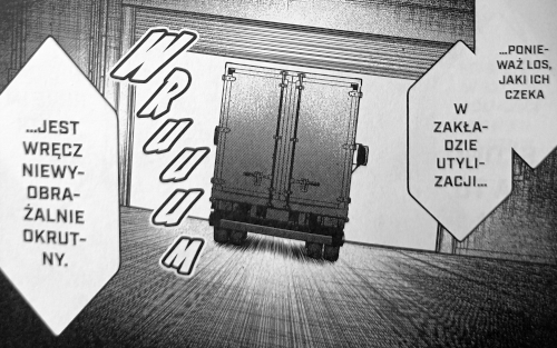 Początek jest nieco wymuszony. Charaktery postaci nie są zbyt głębokie, jednak mocną stroną tego typu mang jest tło akcji i intensywność scen akcji. Może ten tytuł nie umywa się do Battle royale, ale fani gatunku powinni być zadowoleni. Moim zdaniem sporym minusem są sceny ecchi, które nijak nie pasują do tematu. Minusem jest też łopatologiczne wprowadzanie grozy. Jak? Tłumacząc czytelnikowi, że zaraz wydarzy się COŚ OKROPNEGO. Wolę jednak budowanie klimatu obrazem i niedopowiedzeniami.