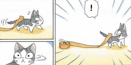 Oczywiście życie Chi toczy się i wewnątrz domu. Początkowo nieufna kotka zaczyna zwiedzać cały dom i trafia także do pokoju taty. Tu nieopatrznie wdeptuje w taśmę klejącą. Kończy się to większym bałaganem niż można to sobie wyobrazić! Ale co najlepiej w takiej sytuacji robią koty? Kto miał kota, ten wie, że udają, że to nie ich sprawka.