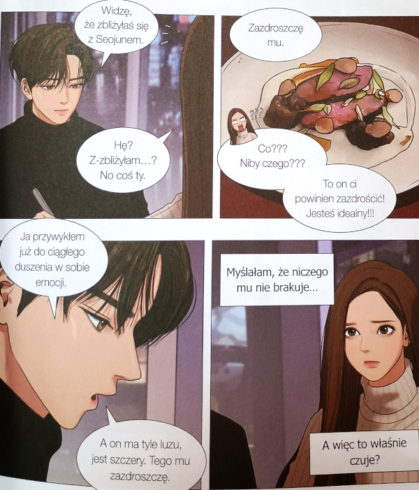 Jako osoba, która nie przepada za trójkątami miłosnymi, po raz kolejny stwierdzam, że Yaongyi doskonale radzi sobie z tą historią, nie wywołując u nas przewracania oczami. Mamy też do czynienia z bardziej dojrzałą relacją, więc nie każdemu przypadnie do gustu. Mimo to polecam.