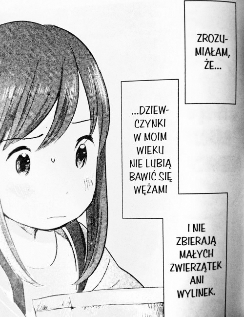 Przepiękne rysunki i odrobinę smutna historia o dorastaniu gdzieś na odludziu, by uchować inność przed ludzkimi oczami i dać wybrać właściwą drogę życia. Kim staną się Ame i Yuki pod kochającym okiem otwartej na każdego Hany?